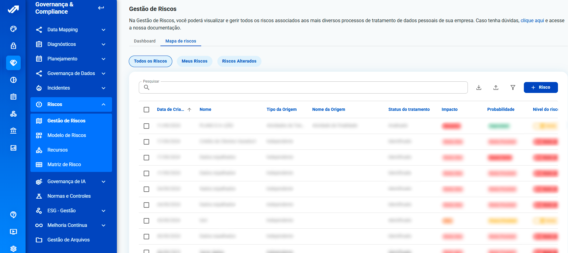 Ganhe escala e inteligência com riscos globais, vínculos automáticos e sugestões baseadas nas informações do Data Mapping.