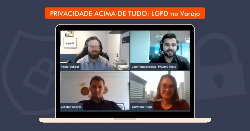No último dia 30 aconteceu mais um evento online e gratuito promovido pela Privacy Tools que abordou o tema LGPD no varejo. O evento que foi conduzido por Jean Vasconcelos, da Privacy Tools contou com a presença dos especialistas do cenário de proteção de dados Clayton Soares, da Pague Menos; Carmina Hissa, da Hissa & Galamba Advogados; e Paulo Vidigal, da Prado Vidigal Advogados.