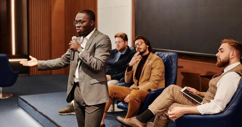 Começando a lista por um dos meios de treinamentos mais procurados: palestras. Os palestrantes devem conhecer e integrar o tema de uma forma que correlacione com a área de atuação da empresa contratante.